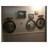 Collection of 4 piece Rare Convex Federal Round Mirrors.