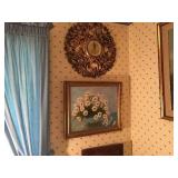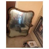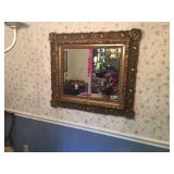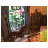 BEAUTIFUL COLLECTION OF ORNATELY CARVED ANTIQUE GILT MIRRORS, LARGE STAINED GLASS WINDOW.