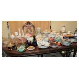 Includes Royal Doulton china, Lalique figures, waterford crystal, vintage clothing, furs, vintage & contemporary purses, dancing Elvis phone, paintings, collectibles, huge costume jewelry, books, cook books, silver plate, Mary Gregory glasses, Coconut Grove posters, Xmas, area rug, 52" TV with wall mount, Doulton Lady, furs, sofa and living room chairs, marble top tables, coffee table, salt and pepper collection, tools, golf clubs, pots and pans, Evesham set, English Crystal complete set, Limoge china, waterford stemware, luggage set with tags, golf clubs, Lily Rubin and other great clothes, perfume collection, dining room with 6 chairs, Desert Rose serving pieces, full kitchen, antique marble top table, chinese horse lamp, carved wood figures, cast iron banks, Royal Doulton lady, and so much more, NO Early Birds. No large bags Sales Tax collected. Don't Park on the Grass |