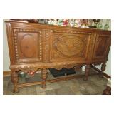 Antique Oak Dining Room Set w/ Nice, Wood Carved Details Including: Tables & 6 Chairs, Buffet/Server and China Cabinet Large Oak Lighted China Cabinet w/ Glass Shelves – Nice (3) Matching Oak Curved Glass China Cabinets w/ Details and Claw Feet Matching Pair of Lighted Curio Cabinets Antique Vanity w/ Stool Antique Wood Youth Chair Antique Drop-Front Desk Pine Armoire Occasional Wingback Chairs Antique Oak 3 Drawer Dresser Antique White 5 Drawer Dresser Antique Side Table/Stand Modern Metal Day Bed Book Shelves Oak Entertainment Center