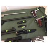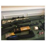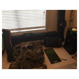 OVER 60 PIECES OF CAMOUFLAGE GEAR TO INCLUDE SUITS, ACCESSORIES, WEAPONS, FOOT GEAR
