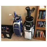 FOUR SETS OF GOLF CLUBS INCLUDING SOME “PING”, TAYLOR MADE, MIZUNO AND TITLIST.