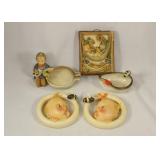 Items located in Pleasant Valley. Items include a large collection of Goebel Hummel figurines, plaques, plates & price guide including "Culprits"; "Goose Girl"; "Little Hiker"; "Playmates"; "Puppy Love"; "Birthday Serenade"; also Royal Doulton toby mugs names incl "Gaoler", "Night Watchman", "Blacksmith", "Boot Maker", "Apothecary"; also Lladro seasonal bells & desk clock "Reloj Bosque" and more.