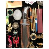 Antique bone handled parasols, carving utensils and letter openers to Capodimonte and Belleek. A handful of Tiffany & Co. treats and bronze elephants statues to an antique thermometer. An onyx and bronze inkstand with clock, antique 3pc porcelain and bronze clock set, an exquisitely carved sandalwood chess set to costume jewelry and more!
