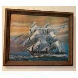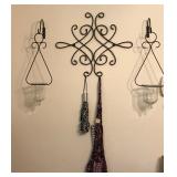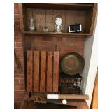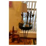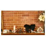 heavy black iron fireplace tools, large sterling candlesticks, framed