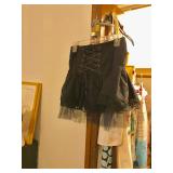 gaming chair, fabric and trims, cute black iron dress form, directors
