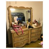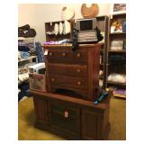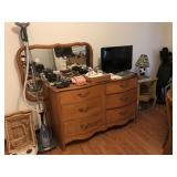 inflatable mattress w/pump, golf clubs, nice dressers and chests,