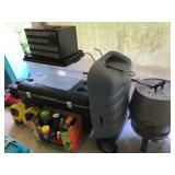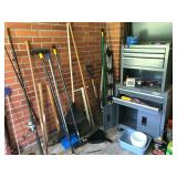 portable grill, HDX rolling tool chest, step-in posts, yard tools,