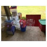 totes and drawers, MTD push mower, large well-made log rack,(you