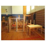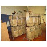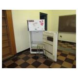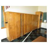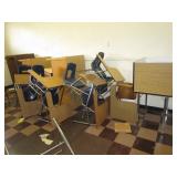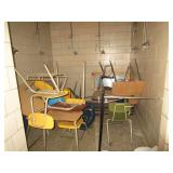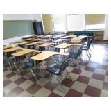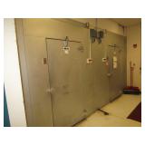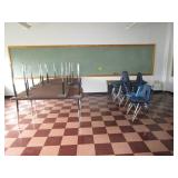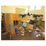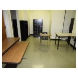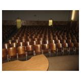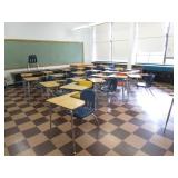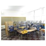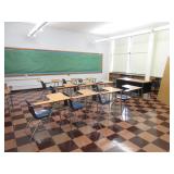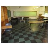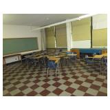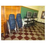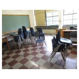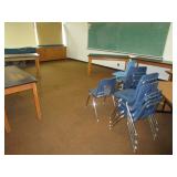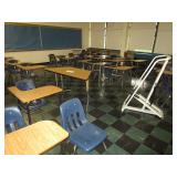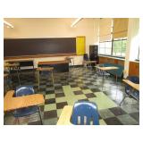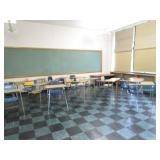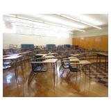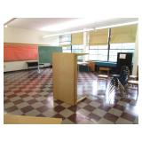 Selling the remaining contents of Akron Schools Perkins Building (former middle school), including: 300 folding theater seats; wooden & metal school desks; (240+) metal folding chairs on racks; stack chairs; science lab tables; work tables; metal & wooden cabinets; overhead projectors; laptop & desktop computers; school pa system; pa speakers; doors & closers; AV carts; electronic scoreboards; basketball hoops; MANY wall lockers; vending machine; Skutt pottery kiln; trash cans; file cabinets; chalkboards; pass through commercial cooler; stainless tables; stainless serving bar; Blodgett commercial oven; Bally walk-in freezer & cooler; stoves & refrigerators; maps; projector screens; window AC units; folding tables; and many misc. items.