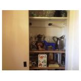 FURNITURE · Two Matching Upholstered Ratan Loveseats · Brown Sofa with Wood Trim, two Cushions and Matching Pillows · Rattan Chair with Flowered Cushions · Antique Tiger Oak Dresser · Small Wood Table on Rollers · Antique Wood Desk with Drawer · Library Rolling Cart · Metal Table · Oak Rectangle Table with 6 Chairs · Antique Lawyer book case · Small Wood Table Cart · Antique Tiger Oak Desk with Drawers · Wood Filing Cabinet · Metal Filing Cabinet · Large Wood Book Shelf · Short Wood Book Case · Natural Wood Book Case · Pine Book Case · Square Wood Night Table · Brass Queen Headboard, Footboard and Frame ACCESSORIES · Navaho Rugs · Particle Board Storage Cabinets · Art · Lamps ART · Southwest Art · Art from Mexico, Arizona and New Mexico · Joanna Mersereau - signed JEWELRY · Native American Jewelry · Turquoise · Red Coral · Hematite · Ears · Necks · Bracelets · Watches · Unusual Beaded Necklaces · Rings LINENS · Queen Mattress Pad · Queen Bed Skirt · Pillows · Throws · Vintage Table Cloths · Bath Towels · Hand Towels · Wash Towels · Sheets · Pillow Cases LADIES CLOTHES size Large · Eddie Bauer, LL Bean, Travel Smith, Talbots, Coldwater Creek · Capri Pants · Casual Pants · Sweaters · Tee Shirts · Sweats · Skirts · Shorts · Terry Robe · Shoes Size (8 – 9) · Handbags BOOKS – CD’s – DVD’s - VHS · Vintage Books · Hardback · Soft Back · Specialty · Gardening · Cookbooks · China · Religion · Iran HOUSEWARES · Glassware · Dishes · Accessory Pieces · Flatware · Pyrex · Fiesta · China · Salt and Pepper Shakers · Pots and Pans · Knifes · Small Appliances APPLIANCES · White Side by Side Refrigerator/Freezer · White Refrigerator with Top Freezer · Washer and Gas Dryer PATIO · Camping Gear · Canning Jars · Tools · Electric Tools · Tool Boxes · Hand Tools · Gardening Tools & Supplies · Tall Plastic Shelf Unit · Wood Storage Unit · Metal Shelves · Rubbermaid Plastic Shed · Wood Swing FRONT PORCH · Glider · Three Wood Chairs · Metal Plant Stands · Some Wicker Patio Furniture · Tree Hugger Plant Stand · Pots and Plants COLLECTIBLES FROM IRAN, CHINA, MOROCCO