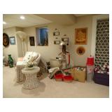Vases, authentic Baltic amber art work, Lithuanian wood wall art, area rugs, sheets, bedding, towels linen, baskets, Lithuanian sashes, wall art by Lithuanian artist Victoras Petravicius, Slipas, Vytautas Valius, Algimantas Kezys, figurines by GDR and one Lladro, 2 Erte bronze statues and more.