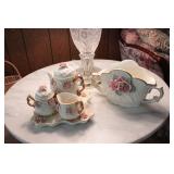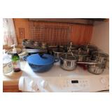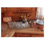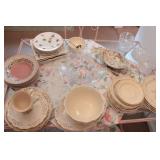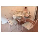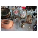 Kitchen: Iron and Glass Dining Table and Chairs with Corresponding Plant Stand and Rack Shelf, Oreck Basement, HP envy Printer, Mid Century Glasses, Le Creuset Cooker, Chantal Pots and Pans, China Sets by Godinger, Elegant Dining, Coastal and more. Porcelain and Pressed Glass by Lefton and Tirschenreuth