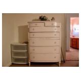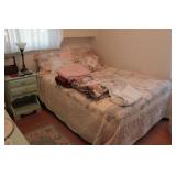 Walk-Through: Full Sized Mattress and Box Spring, Vintage Linens, Vintage Painted Dresser, Plastic Storage Dresser, Vintage and Retro Clothes, Floor Lamp