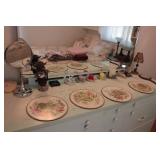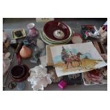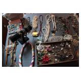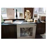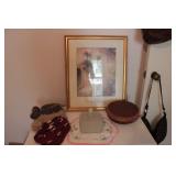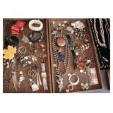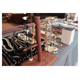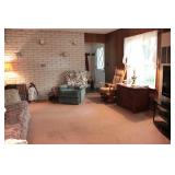 Cashout Living Room Collection of Sterling Silver Jewelry Including Bisbee, Turquoise, Carnelian, and More. Gold Jewelry, and Costume Jewelry. Tiffany Vase, Lladro figurines, Vintage Signed Buffalo Doll, various number and signed framed artwork, Barbara Tyrell Portfolio of prints, Swung Vase, Dolls, Ceramic Figurines, Marble Topped Table, Brass and Pressed Glass Lamps, Howard Miller Wall Clock, Recliner, Cochrane Floral Sofa, Marble Topped Vintage Corner Unit, Small Wooden Drssser, LG TV and TV Stand, Brass Fireplace Set