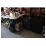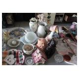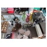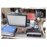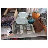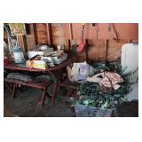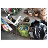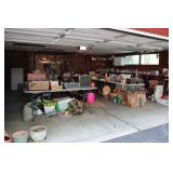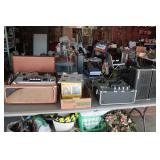 Garage Sanyo 4 Track Reel-to-Reel Player, RCA Victor Deluxe Reel-to-Reel Player, Vinyl Records Including Aerosmith and Led Zeppelin 2, Vintage Brass Lamp, Hayes Parker Tile, Vintage Alarm Clocks, Fire King, Pyrex, Precious Moments, Stoneware Pottery, Vintage Linens, Luggage, Vintage Christmas including Annalee Dolls, Small Picnic Table Set with Benches, Flower Pots, Vases and Jars, Macrame Patio Chair, Oreck Vacuum, Wicker Basket Collection, Wood Rocking Chair, Space Heater, Vintage Slide Projector, Lead Blower, Mailbox, and More