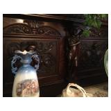 A beautiful ranch home with full basement. Items selling: Beautiful table, side buffet, curio, and sideboard all hand carved. Korean black lacquered with inlaid pearl knock down wardrobe. Would look great in an office or large den. King sized headboard with closed & open shelving matching armoir and dresser with mirror, gorgeous chair, twin iron bed being used as a full size, dark oak vanity, bookshelf and dresser, 1 vintage couch and 1 comfortable couch with ottoman, Gone with the wind lamps, beautiful art pieces, wicker couch, wicker setee, wicker rocker and chaise lounge, bamboo coffee table, glass top round table with 4 chairs, rugs, china, and other kitchen and household items.