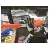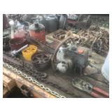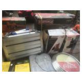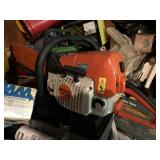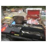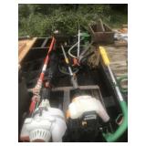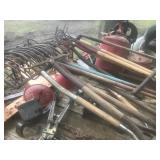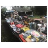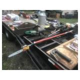 Stihl MS290 chain saw; like new; Stihl HT101 gas weed eater, like new; John Deere battery charger; large utility yard wagon; alum. ext. ladder; alum. step ladder; ext. cords; Eager Beaver 2000 chain saw, new in box; Coleman Powermate 1500 watt generator; Craftsman elec. chain saw; Craftsman stacking tool box; large variety of hand tools including wrenches, sockets, ratchets, and more; bottle jacks; fiberglass step ladder; Craftsman air compressor, new in box; professional grade Gorilla ladder; come-a-long; 2- wheel dolly cart; clamps; vise grips; numerous new tarps; large amount of hardware; small anvil; wheel barrow; galvanized tin sheets; lawn cart; fence post; and much more...