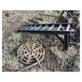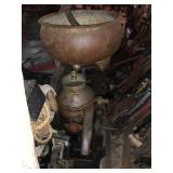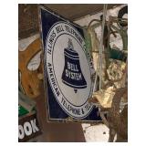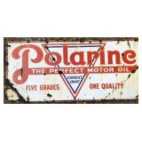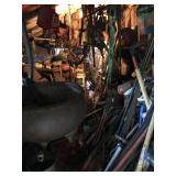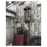 Polarine motor oil porcelain sign; visible gas pump; 2- old oil lubesters; RR stool; vintage bicycles; antique Indian arrows; iron farm wheels; pitcher pump; metal water can; shepards hooks; John Deere thermometer; old feed cart; hand corn plater; hunting by permit sign; DeLaval cream separator; Letz Mill small grinder; numerous antique animal traps; Bell Telephone System flange sign; IH genuine parts painted tin sign; East Buffalo Brewery Lager Beer advertising tray; old license plates; antique windows; Ford Service Sign; curved glass oak display cabinet; wood school desk; oak desk with single drawer; 9 drawer desk; antique dresser; exercise bicycle; cedar chest; white dresser w/ mirror; antique pictures; 2- multi drawer small antique cabinets; gun books; 2- mirror dresser; beds; oak desk and chair; flat screen TV; grandmother clock; steamer trunk; several concrete planters; concrete gargoyle; concrete religious statues; concrete bid bath; and much more...