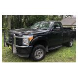2013 Ford F-250 XL reg. cab, long bed, 4x4, 46,800 miles, gas, running boards, bed rails, brush guard, 1- owner, very clean truck; 1987 Ford F-250 XLT, diesel, reg. cab, long bed, 74k miles, very clean garage kept truck, power doors and locks, trailer brakes; 2008 H&H 6'x'10' landscape trailer, sides, ramp gate, spare tire, 2" ball; single axle utility trailer; small Leland trail