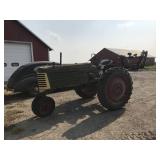 Car, Tractors, Skidloader, Farm Related, and Tools: '39 Ford Deluxe (Two Door, Complete, non-running), Oliver 880 (Gas, Wide Front), Oliver 77 (project), Oliver 66 (Nice Original), Oliver 60 (Complete), Oliver 60 (Mounted Cultivator, Older Restoration), Cockschutt 30 (Complete), John Deere G (Styled), John Deere B? (Parts), Farmall 300 (Drawbar), Allis Chalmers WD, Allis Chalmers CA, Allis Chalmers WD, Owatonna 345 Skidloader, Dump Rake, Mounted Cultivator, Two Bottom John Deere Plow, Two Bottom Moline Plow, IH Check Drive Planter, Mastercraft Riding Mower, Rally Push Mower, Saws, Planes, Hammers, Screw Drivers, Drill Press, Vice, Air Tanks, Shop Vac, Organizer Bins, Iron Kettle, Forge, tool Boxes, more…