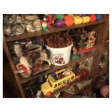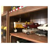 Anitques and Collectibles: Oak Secretary, Dry Sink, Dresser, Kitchen Cabinet (Hoosier Style), Several Trunks, Skelly Can, 1909 Argentine Bayonette, Cut Glass Items, Pressed Glass, Coin Glass, Viking Glass, Carnival Glass, Watts Pitcher (Farmers Coop Dows), Watts Bowl (Janssen Locker Buffalo Center), Planters Peanut Jar, Hull pieces, Cups and Saucers, Mc Coy and Other Cookie Jars, Some Hammered Aluminum, Meat Grinders, Kerosene Lanterns, Old Toasters, Old glass bottles (Fort Dodge, Mason City, Estherviller), Figurines, Vases, Brass Pieces, Paper Weights, Kitchen Utensils, Linens and Doilies, Quilts, Barbie Dolls, Framed Prints, Old Books, Bell for Ford Dealer (Lakota), Hawkeye Service Lakota IA Calendar (1926), OL Gilbert Calendar (1930), License Plates from 30's-50's, Bells, Crossman Pump BB Gun, Kids Kitchen Set, Lincoln Logs, Costume Jewelry, Brunswick Phonograph, Character Glasses, Accordion, boot jack, cuckoo clocks, Mantle Clocks, Semi Truck Toys, Small Tin Cars, Tonka, Marbles, Brass Horse Clock, Chalkware, Cap Guns, Beanie Babies, Fishing Rods and Reels, Old Radios, Copper Boiler, Flower Bin, Tin Seats on Stands, Egg Baskets, Egg Crates, Typewriters, 48 Star Flag, Six gallon Redwing and Other Crocks, Sad Irons, Iron Bed, Maytag Square Front Washing Machine, Cream Cans, Milkers, Cast Stoves, Cream Separator, Advance Hay Pulley, Cupelo, Farm Toys: IH 966, Oliver 880, Oliver 770, Oliver 70, Oliver 77 Precision, Gleaner Combine, IH 350, AC 7060, AC 7080, AC 8010, AC WD45, Case 1170, Massey 555, Oliver 1855, Oliver 1850, more..