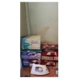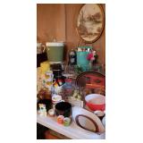 Stay Tuned for more pics and descriptions... MID CENTURY DREAM! Vintage Therm-o-ware Vintage Thermos Round Table with six chairs Carnival, Green & Pink Glass Lamps Irons Vintage Toys Vintage Puzzles Hot Wheel Tracks Train tracks Foosball table Baking dishes and pans Picture frames Vintage hair dryer Vintage Tupperware Couch and chairs End tables Pillows Cigar boxes Sewing Machine Hot Wheel Tracks Games Vintage glassware Shabby chic cabinets Mid century bedroom set Tins Dishes Vintage percolator Riding lawn mower Golf Clubs Dining room table Milk glass Albums Primitive table Vacuum Cleaners Upright Paino & Organ Holiday decor Yarn and Needle point kits Sewing baskets Shelves Vintage typewriters Trumpet