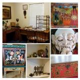 This sale features unique artifacts from Indonesia, Malaysia and Java. There is also beautiful vintage furniture and trunks and more. Keep checking back for more photos and Information |