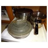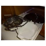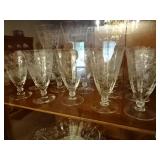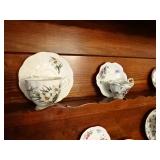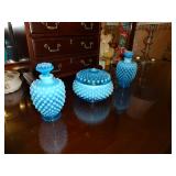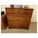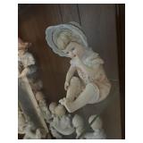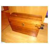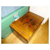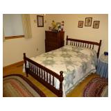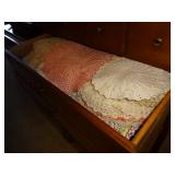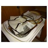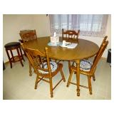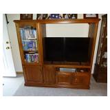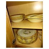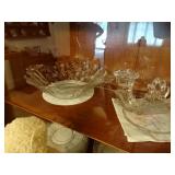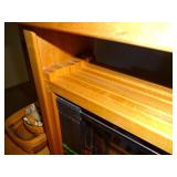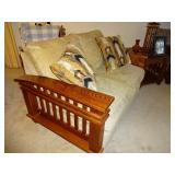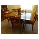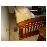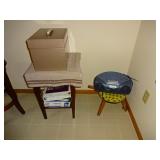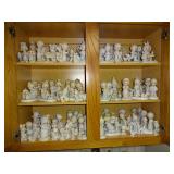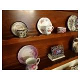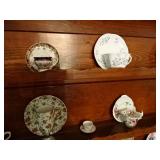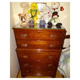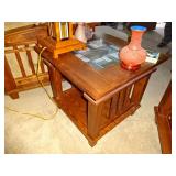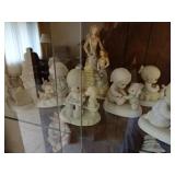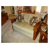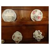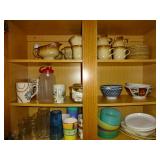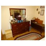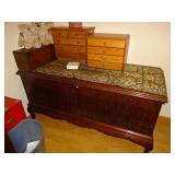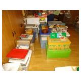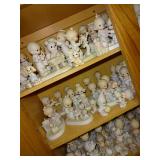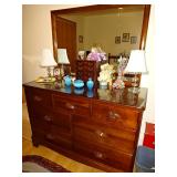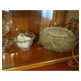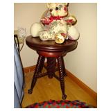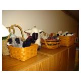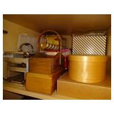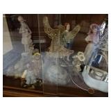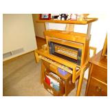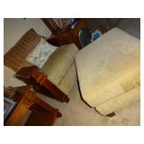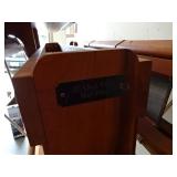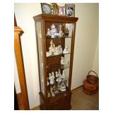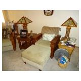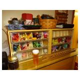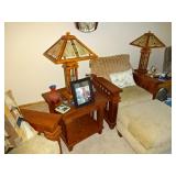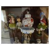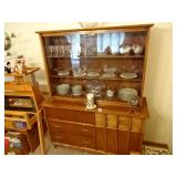 Furniture & Household: Mission-style Love Seat, Upholstered Chair w/ottoman, (2) End Tables & (2) Lamps (all matching); Power Lift Recliner; Maple Dining Table w/folding ends & 4 Chairs; Maple Hutch w/2 sliding glass doors; Oval Kitchen Table & 4 Chairs; Oak Entertainment Center w/ side cabinet; Curio Cabinet, 4-shelf; Wall Display Rack; 3-Pc Cherry Bedroom Set; Small Dresser; Cedar Hope Chest; Cane Seat Chair; Misc Stools; Vintage Claw Foot Piano Stool; Assorted Jewelry Cabinets; (3) Large Wardrobe Wood Cabinets w/lock; Seiko Wall Clock; Regulator Wall Clock; Over 100 Precious Moments; Lladro Figurines; Fostoria; Tea Cup Collection; Glassware; Dishware; Pots/Pans; Kitchenware; Asst Baskets (including Longaberger); Braided Rugs; Quilter's Cutting Table; Blue Hobnail Vanity Set; Pottery Pieces; (2) Lefton Miss Dainty Wall Pockets; Garage Items; Steel Shelving; Lawn Ornaments.