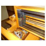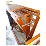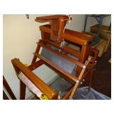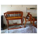 Looms: (Top Feature Photo in flyer) 36" Sievers Cherry Floor Loom w/Bench and 15" Sievers Cherry Table Loom, with extra reeds, both made in Washington Island, WI (SieversSchool.com); the third Floor Loom is made by the Schacht Spindle Company (1st photo from the left on the flyer).