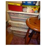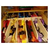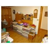 Large Assortment of Quality Crocheting and Weaving Yarns, Knitting Needles and Accessories, Quilting and Sewing Supplies, Printed and Dye-Ready Fabric and other Fiber Art Supplies; Weaving Material; Knitting Material; Quilting Material; Beading Supplies; Janome New Home Memory Craft 7500 Sewing Machine; DMC Embroidery Floss; 100s of Handmade Doilies; Many Books & Magazines on Crafting; Many Organizers & Storage Containers.