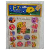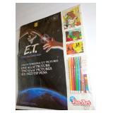 E.T. THE EXTRA-TERRESTRIAL-RELATED: 1982 CHEIN CO E.T. THE EXTRA-TERRESTRIAL METAL WASTEBASKET 1982 COLORFORMS E.T. THE EXTRA-TERRESTRIAL COLORFORMS ACTIVITY SET 1982 CRAFT MASTER E.T. THE EXTRA-TERRESTRIAL 60 PIECE, FLIGHT OVER THE MOON 1982 CRAFT MASTER E.T. THE EXTRA-TERRESTRIAL QUICKLATCH PILLOW KIT 1982 CRAFT MASTER FIGURINE PAINT SET, ET DRESSUP 1982 DEKA E.T. THE EXTRA-TERRESTRIAL PLASTIC TUMBLER 1982 DIAMOND TOYMAKERS E.T. THE EXTRA-TERRESTRIAL SCRATCH AND SNIFF STICKERS 1982 DIAMOND TOYMAKERS PUFFY STICK-ONS, 2 STICKERS PER PKG 1982 FUNDIMENSIONS E.T. THE EXTRA-TERRESTRIAL MAKIT & BAKIT SUNCATCHERS, THE TOUCH LOGO 1982 HALLMARK CARDS E.T. THE EXTRA-TERRESTRIAL NAPKINS, PLATES, CUPS 1982 KAMAR E.T. THE EXTRA-TERRESTRIAL STUFFED VINYL DOLL, ET WITH ELONGATED LIMBS