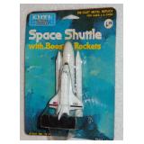 ERTL NASA DIECAST ENTERPRISE SPACE SHUTTLE ACTION VEHICLE WITH LANDING GEAR KID STUFF RECORDS/NASA LAUNCH OF 1 ST SPACE SHUTTLE PICTURE DISC 1970 MONOGRAM MODELS, FIRST LUNAR LANDING VARI-VUE NASA SPACE PICTURES 3-D RULER, SHUTTLE SCENES STICKER, TEACHER IN SPACE PROJECT
