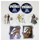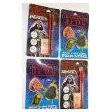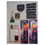1977 LEASTER SHOP STAR WARS METAL BELT BUCKLE, R2-D2/C-3PO 1977 WEINGEROFF ENT STARWARS KEYRING STORMTROOPER 1977 WEINGEROFF ENT STARWARS KEYRING X-WING 1977 WEINGEROFF ENT STARWARS PENDANT + CHAIN DARTH 1977 WEINGEROFF ENT STARWARS PENDANT AND CHAIIN, X-WING 1977 WEINGEROFF ENT STARWARS PENDANT STORMTROOPER 1977 WEINGEROFF ENT STARWARS PENDANT STORMTROOPER 1977 WEINGEROFF ENT STARWARS PIERCED EARRINGS,(2) C-3PO 1977 WEINGEROFF ENT STARWARS PIERCED EARRINGS, DARTH VADER 1977 WEINGEROFF ENT STARWARS PIERCED EARRINGS, R2/D2 1977 WEINGEROFF ENT STARWARS PIERCED EARRINGS, SET OF 3, 1 EACH DARTH, C-3PO, R2-D2 1980 WALLACE BERRIE CO ESB MEDAL PINS (DANGLE PINS) BOBA FETT 1980 WALLACE BERRIE CO ESB MEDAL PINS (DANGLE PINS) CHEWBACCA 1980 WALLACE BERRIE CO ESB MEDAL PINS (DANGLE PINS) X-WING FIGHTER PILOT 1980 WALLACE BERRIE CO ESB PENDANT WITH CHAIN DARTH VADER 1980 WALLACE BERRIE CO ESB RINGS MTFBWY 1980 WALLACE BERRIE CO ESB RINGS YODA 1983 ADAM JOSEPH DIECAST PENDANT NECKLACE, R2-D2 1983 ADAM JOSEPH EWOKS CHARACTER KEYCAIN, KNEESAA THE EWOK 1983 ADAM JOSEPH EWOKS CHARACTER KEYCAIN, WICKET THE EWOK 1983 ADAM JOSEPH IND JEDI DIECAST PENDANT NECKLACE ARTICULATED C-3PO 1983 ADAM JOSEPH IND JEDI DIECAST PENDANT NECKLACE ARTICULATED C-3PO 1983 ADAM JOSEPH IND JEDI DIECAST PENDANT NECKLACE ARTICULATED CHEWBACCA 1983 ADAM JOSEPH IND JEDI DIECAST PENDANT NECKLACE DARTH VADER 1983 ADAM JOSEPH IND JEDI DIECAST PENDANT NECKLACE R2-D2 1983 ADAM JOSEPH IND JEDI DIECAST PENDANT NECKLACE YODA 1983 ADAM JOSEPH IND JEDI DIECAST PINS, SW LOGO, MTFBWY, JUDI LOGO 1983 OLDE NEW ENGLAND MINT, STAR TREK METAL BELT BUCKLE, USS ENTERPRISE 1986 STAR WARS 10 TH ANNIVERSARY PIN-BACK BUTTON, 10 TH LOGO 1987 HOWARD ELDON LTD STAR WARS KEYCHAIN, NEW HOPE TRIANGULAR LOGO 1987 HOWARD ELDON LTD STAR WARS PEWTER PIN, 10 TH ANNIV LOGO 1987 LUCASFILM STAR WARS 10 TH ANNIVERSARY PIN-BACK BUTTON, 2 DIFFERENT WITH 10 TH LOGO 1987 STAR WARS 10 TH ANNIVERSARY KEYCHAIN, 10 TH LOGO 1987 HOWARD ELDON ESB NECKLACE, VADER IN FLAMES 1987 HEL VN CA STAR WARS METAL CHARACTER PINS, "STAR WARS," C3PO, ENAMEL ON METAL 1988 HOLLYWOOD PINS, STAR TREK STARFLEET LOGO IN SILVER AND GOLD 1989 APPLAUSE BACK TO THE FUTURE KEYCHAIN, DELOREAN 1989 ROSECRAFT BATMAN SILVER PEIRCED EARRINGS, BATMAN LOGO 1992 OSP PUBLISHING BATMAN RETURNS PIN-BACK BUTTON, CATWOMAN 1993 AVON PRODUCTS BATMAN CLEANSER, BUBBLE BATH, SHAMPOO, ALL WITH FIGURAL TOPPERS 1994 A.H. PRIZMATIC DARTH VADER HOLOGRAM KEYCHAIN 1997 APPLAUSE STAR WARS PLASTIC KEYRING, DARTH VADER 1997 KENNER STAR WARS DIECAST KEYCHAIN, HAN SOLO IN CARBONITE 1997 PLACO PRODUCTS DIECAST KEYCHAIN SET, HAN, BOBA, YODA, OBI