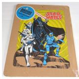 1978 RANDOM HOUSE STAR WARS GROW CHART 1983 BALLANTINE STAR WARS INTERGALACTIC PASSPORT 1987 STAR WARS 10 TH ANNIVERSARY BUMPERSTICKER, BLACK LOGO ON GOLD FOIL STAR WARS VARIOUS PHOTOGRAPHS, STAR WARS, HARRISON FORD 1983 AMERICAN TOY & FURNITURE TABLE & CHAIR SET, BOX DAMAGED 1983 AMERICAN TOY & FURNITURE WARDROBE AND HEIGHT RULER, LUKE & DARTH 1994 QVC EMBOSSED METAL POSTER, STAR WARS STYLE A 1984 GYM DANDY JEDI JUNGLE GYM SPEEDER BIKE RIDE (NO COMMAND TOWER)