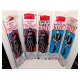1983 DRAWING BOARD JEDI NOISEMAKER 1984 C.A. REED INDIANA JONES:TEMPLE OF DOOM PAPER PLATES (7") 1984 INDIANA JONES:TEMPLE OF DOOM 5" NAPKINS 1986 SWEETHEART LABYRINTH PAPER CUPS, NAPKINS, DINNER PLATES, STRAWS 1987 DIXIE STAR WARS PAPER CUP REFILLS, 100 5 OZ. CUPS, DIFFERENT COVERS 1989 UNIQUE IND. BATMAN PLASTIC "LOOT" BAGS WITH BAT SYMBOL, PAPER PLATES 1987 CALIFORNIA DREAMERS STAR TREK BIRTHDAY CARD, SPOCK