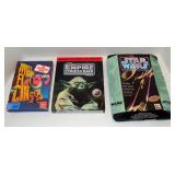 1983 BUENA VISTA RECORDS, BOOK/7-INCH RECORD SET, "THE STORY OF JEDI", SEALED 1977 BUENA VISTA RECORDS, BOOK/7-INCH RECORD SET, "THE STORY OF STAR WARS" 1979 BUENA VISTA BOOK/CASSETTE SET, "THE STORY OF STAR WARS" 1979 BUENA VISTA BOOK/CASSETTE SET, STAR WARS STORY, MUSIC, PHOTOS 1979 BUENA VISTA BOOK/CASSETTE SET, "THE STORY OF THE EMPIRE STRIKES BACK" 1979–82 BOOK/CASSETTE PORTFOLIO, 6 DIFF TAPES, 12 DIFF BOOKS, INC. TRILOGY, DARK CRYSTAL, BLACK HOLE, EWOKS, MORE 1980 BUENA VISTA RECORDS, BOOK/7-INCH RECORD SET, "THE STORY OF EMPIRE STRIKES BACK" BUENA VISTA RECORDS, BOOK/7-INCH RECORD SET, "STORY OF DARK CRYSTAL" 1992 BANTAM BOOKS, STAR WARS AUDIO CASSETTE, "DARK FORCE RISING", STORY TOLD BY ANTHONY DANIELS,FEATURES STAR WARS MUSIC AND SOUND EFFECTS 1983 BUENA VISTA "DROID WORLD" 1983 BUENA VISTA "EWOKS JOIN THE FIGHT" 1984 BUENA VISTA STAR WARS, "STAR WARS ADVENTURES IN ABC" 1984 BUENA VISTA STAR WARS BOOK/CASSETTE SET, "ENTIRE SW TRILOGY" 1997 WALT DISNEY PRODUCTIONS, STAR WARS DISNEY READ-ALONG SERIES KIT BUENA VISTA, STAR TREK BOOK/7-INCH RECORD SET, STAR TREK III:THE SEARCH FOR SPOCK EMBROIDERED PATCHES:
