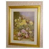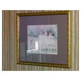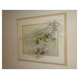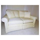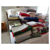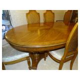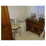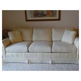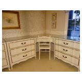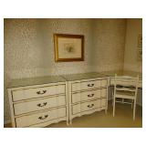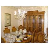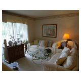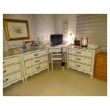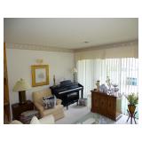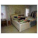 FURNITURE and HOME DECOR: King size bed with matching armoire, 2 nightstands, dresser and mirror. Leather sofa, french provincial dressers, file cabinets, Yamaha Clavinova digital piano, end tables, sofa table, glass and brass coffee table, Thomasville dining room table, china hutch and buffet, Drexal off white sofa with matching love seat, easy chair, lamps, area rugs, wall art, bookshelves, small kitchen table and chairs, stools, linen, Hibel wall art, mirrors, throw pillows, and more.