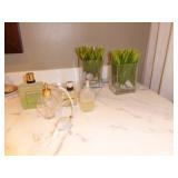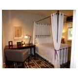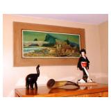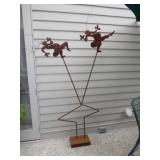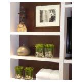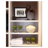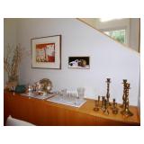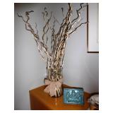 DECORATIVE ACCESSORIES •CRATE & BARREL IRON FIRESCREEN •PAIR LARGE HANDBLOWN GLASS VASES W/ CURLY WILLOW STICKS •LARGE LEAF FIG TREE (REAL) •2 LARGE HANDCARVED DRIFTWOOD SCULPTURES •IRON DANCER SCULPTURE •WATERFORD TABLE LAMP •SMALL CRYSTAL & BRONZE LAMP •MAHOGANY QUARTZ DESK CLOCK •BLUE/WHITE PROCELAIN HORSE LAMP •PAIR BOMBAY METAL FLAMINGOES •OUTDOOR IRON SCULPTURE
