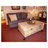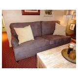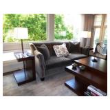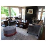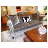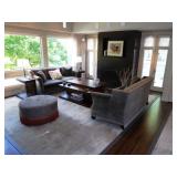 FURNITURE •YOUNG CHANG MODEL G-185 SATIN BLACK GRAND PIANO W/ PLAYER, SERIAL NO. G-046505 •CUSTOM TUFTED GRAY VELVET SOFAS WITH NAILHEAD DETAIL BY HICKORY CHAIR •PAIR CUSTOM DARK WOOD LAMP TABLES AND MATCHING MULTI-LEVEL COFFEE TABLE W/ 2 BROWN LEATHER BENCHES – ALL DESIGNED BY JEFFREY KING •SET OF 8 HENREDON MAHOGANY DINING CHAIRS WITH NAILHEAD DETAIL (6 ARM, 2 SIDE) •CUSTOM ROOM-SIZE RUGS & 2 RUNNERS WITH LEATHER BINDING •SET OF 3 UPHOLSTERED COUNTER CHAIRS BY SWAIM •ANTIQUE PINE ARMOIRE •PAIR MITCHELL GOLD TUFTED OVERSIZED LEATHER ARMCHAIRS •CUSTOM GRAY ULTRASUEDE SOFA •CUSTOM GRAY ULTRASUEDE ROUND OTTOMAN W/ RUST FRINGE •EARLY 19TH C. ENGLISH GRANDFATHER CLOCK BY W & C NICHOLAS, BIRMINGHAM •VINTAGE HERMAN MILLER EQUA RED LEATHER DESK CHAIR, DESIGNED BY BILL STUMPF & DON CHADWICK •ANTIQUE FEDERAL 4-DRAWER CHEST •QUEEN IRON 4-POST CANOPY BED BY BRASS BEDS OF VIRGINIA •JOSN-LUC RIVOLLIER, FRANCE 4-DRAWER CHERRY CHEST W/ LOCKING DRAWERS •MAHOGANY WRITING DESK •CUSTOM WOOL UPHOLSTERED ARMCHAIR •CUSTOM BROWN LEATHER LONG BENCH •2 BROWN/OFF-WHITE WEST ELM WOVEN ROOM-SIZE RUGS •STAINLESS/BLACK METAL SINGLE BAR STOOL – MADE IN CANADA •DARK WOOD QUEEN BED W/ GRAY SUEDE UPHOLSTERED HEADBOARD •BARBARA BARRY FOR HENDREDON ARMCHAIR •CUSTOM WALNUT DRESSER •CUSTOM WHITE LACQUER DESK •RECLAIMED WOOD SQUARE SIDE TABLE •DARK WOOD PARSON’S STYLE GAMES TABLE •5 BROWN LEATHER DINING/GAMES CHAIRS W/ CASTERS •SET OF 3 BROWN LEATHER BAR STOOLS •LARGE BROWN LEATHER OTTOMAN •KITTINGER CHERRY SERVER •BLACK CENTER TABLE W/ DRAWER •BROWN JORDAN PATIO FURNITURE •SMITH & HAWKINS WOOD CHAISES W/ COVERS BY FRONTGATE