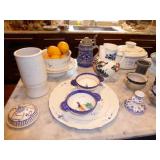 GLASS & POTTERY •ENGLISH CUPS & SAUCERS •WATERFORD “SHAFTSBURY” CRYSTAL STEMWARE •VINTAGE LIBBEY-ROCK SHARPE STEMWARE, “CUT FLORAL & ARCH DESIGN” •CRYSTAL BY WATERFORD, BACCARAT, STEUBEN, RIEDEL •IITTALA SETOF CORDIALS AND SIGNED TOIKKA ART GLASS BIRD •TRENTON POTTERY •GLICK POTTERY •DELFT PIECES •VILLEROY & BOCH “VIEUX LUXENBOURG” SERVING PIECES •PEWABIC POTTERY TILE – “3 BEARS” •GOLD IMARI VASE AND BOWL •QUIMPER BOWLS AND UMBRELLA STAND •VILLEROY & BOCH “1748” SQUARE PLATES & MUGS •WILLIAMS SONOMA SQUARE PLATES & MUGS •STUDIO POTTERY COLLECTION •BLUE/WHITE PORCELAIN FLOOR VASE