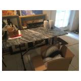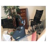 AWESOME VINTAGE TOYS TO INCLUDE: Rare Rockem Sockem w original box in very good condition. Electric train, Gilbert Chem Craft Child's microscope. Official Baseball Game. Matchbox metal cars in original box. Toy metal guns and holsters. Plastic Dinosaur, old puzzles, metal army toys. POWER TOOLS AND HAND TOOLS TO INCLUDE: Delta Chain Saw, Power Lawn mower, multiple garden tools and hand tools. LOVELY FURNISHINGS TO INCLUDE: Several sets of beautiful outdoor patio furniture, tables, chairs and umbrellas. Four poster cherry rice bed w matching end tables. LOADS OF LAWN ORNAMENTS, POTTED PLANTS ANTIQUES TO INCLUDE: Art Nouveau Chifferobe. Art Nouveau metal fire screen. EXERCISE EQUIPMENT TO INCLUDE: Sports GT C52R Stationary Bike. G.E. Washer & Dryer and much more to discover! |