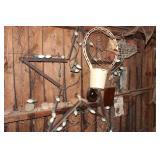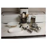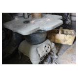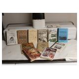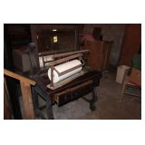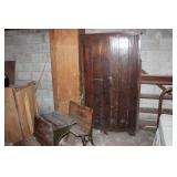 MANY WONDERFUL ITEMS: VINTAGE DR PEPPER 10 2 4 THERMOMETER, HOME COMFORT WOOD COOK STOVE, GREEN DEPRESSION GLASS, CAST IRON SKILLETS, GRISWOLD ASH TRAY, KITCHEN KNIFE BLOCK AND BUTCHER KNIVES, WOODEN KEGS AND BARRELS, LADDER BACK CHAIRS, LOTS OF DISHES, PLATTERS, SERVING DISHES, PYREX, FIRE KING, VINTAGE KITCHEN UTENSILS, COUNTRY STOOLS BOTH ROUND AND SQUARE, VINTAGE "GRIPSTAND" MIXING BOWLS, VINTAGE COOKBOOKS, CANNING JARS, VINTAGE METAL FAN, LARGE TIN CONTAINERS, WURLITZER PIANO (PLAYS GOOD), PRAYER OF VICTOR BOOKENDS, SCHOOL DAZE MUSIC BOX, 1901 HYMN BOOK, FRANKLIN COUNTY BOOKS...THE LIFE OF HOMER MURRAY, 'SHINE, THE LONG WAY HOME, GOIN' UP SHOOTIN CREEK,...OAK CHEST, HEN ON THE NEST, WOOD FOLDING CHAIRS, OAK BOOKCASES, ANTIQUE CHERRY DRESSER W/MIRROR, ANTIOCH CHURCH PLATES 1960, ANTIQUE SCHOOL DESK, PRIMITIVE PINE WARDROBE, MILLER & FLEET STRASBURG, VA CROCK, ANTIQUE PAPER CUTTERS, STONEWARE CROCKS AND BOWLS, OLD WOOD CARTONS AND CRATES, VINTAGE WHITE KITCHEN WALL HUTCH, PRIMITIVE MADE FLIP TOP DESK, VINTAGE ROASTING PANS, DISHPANS, METAL PORCH CHAIRS, RARE 6 DOZEN EGG CRATE, WHEELBARROW, WAGON WHEEL LAWN ART, CONCRETE PLANTERS, HOMEMADE WOODEN LADDER, OLD CALENDARS, DECANTERS, AND SO MUCH MORE...
