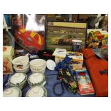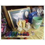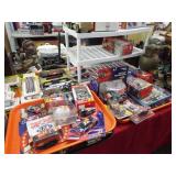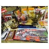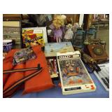 The furniture that we previously had pictures will be at the auction next week due to the consignors family emergency. This week we have an amish room divider, double bed, entry table, marble top stand, pedestal, sofa & chair, clothes rounder rack, metal glass top stand, yard chairs, floor lamp, coins including rolls of wheat cents, indian head cents,silver Washington quarters, & mercury dimes, red line cars, dinky toy mobile crane, fisher price xylophone,energizer bunnies,brass & porcelain ducks, Ertl ECOLO=Tiger ST770 farm toy, sling shot with lead ammo, Budweiser air ship, xboy game system and games, wood cigar boxes, antique glass light, Hornady bullet display, giraffe and horse large sculptures, framed wildlife prints, Serafin angels in original boxes, hummel, amish table, large wood chess set with carry case board, Madame Alexander doll, ginny doll, kewpee doll, fish metal art, vintage child utensil set, decorative metal mirror art, Ed Hardy neon clock, swords, antique tools, Disney toys, large collection of glassware,Nascar, die cast, buffer with accessories,fans, leather jackets, wood gossip stand, oil lamps, plane kite, indian plates, jewelry box and jewelry, steeler collector footballs, antique coin sets, guitar, fenton vase, whip, small grinder,wood lathe,proto wrenches, metal airplane sign,drop leaf table, end table, mirror, wood cabinet,golf clubs, art supplies, milk glass, wicker rack, mirror on stand, video games including xbox 360,wii, pc, & xbox,perfume bottles, electric heaters, craftsman home repair kit, lathe, proto wrenches,model car kits,home décor and much more.
