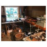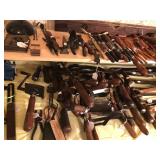 ANTIQUE TOOLS CROCKS CLOCKS PRIMITIVE FURNITURE and MORE