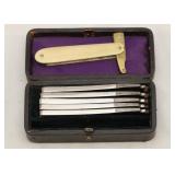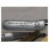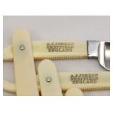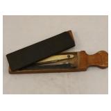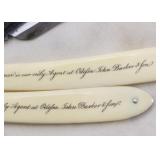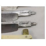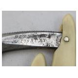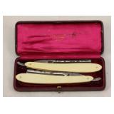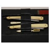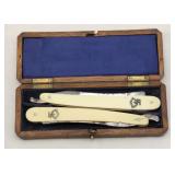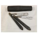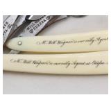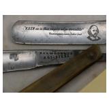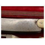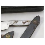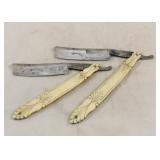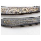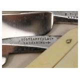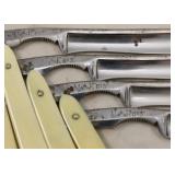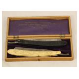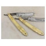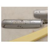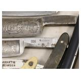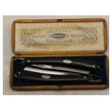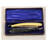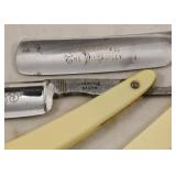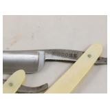 This offering of straight razors and related items is from the collection of Claude Rondeau with additions. Claude Rondeau, who lived in France, collected fancy and unusual straight razors for over 40 years. I, Robert Doyle, met him when he visited my home in 1984 to view my collection. While he purchased some unique pieces from me over the years, he primarily assembled his collection in France. As this offering will attest, he sought the rare and unusual. French made straight razors are quite rare in the U.S. and very hard to find. One unique feature is the wooden slide top cases that house some of his straight razors. A good number of these rarities are offered in this auction. He also collected many rare genuine ivory handled 19thC examples - many one of a kind. All lots sold as is, where is. There is a 15% Buyers Premium for all lots purchased. Payment methods include cash, MC, Visa, Discover or good check. You can make credit card payment online by going to your Member Area and selecting your invoice. *NOTE* Shipping is available on all items. Preview: review available online 24 hours.