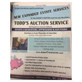 Todd's Auction Service: TAF# 5415 TAL # 5911. INSPECT BEFORE YOU BUY, ALL SALES FINAL, NOT RESPONSIBLE FOR ACCIDENTS, may be Limited Access to some Areas, SECURITY ON SITE |