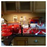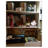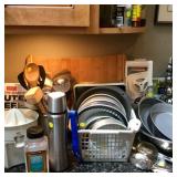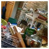 Kitchen items galore-cookware, bakeware, appliances like Kitchen Aide mixer, cuisinart food processor & juicer,Le-Creuset Dutch oven, cookbooks, Krups coffee grinder,pot & Krups blender