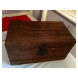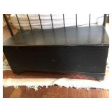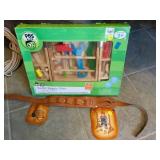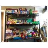 Antique wood doll trunk with tray, 2 vintage hard plastic dolls, toys, games, puzzles, baseball cards