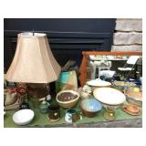 Huge collection of hand thrown pottery, vases, cups, bowls, huge vase, lamps, etc.